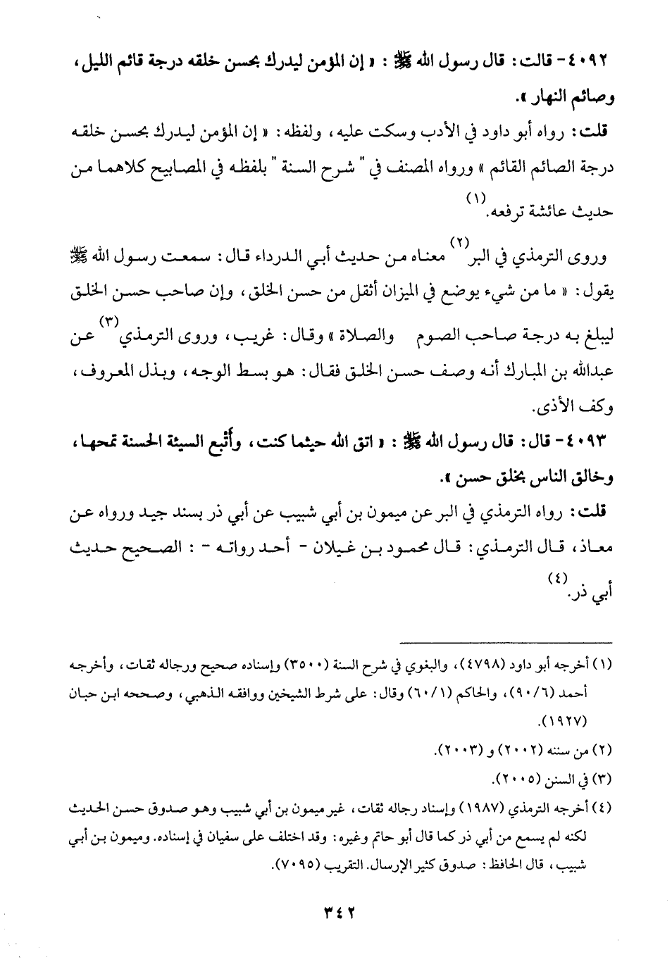 (¬4) أخرجه الترمذي (1987) وإسناد رجاله ثقات، غير ميمون بن أبي شبيب وهو صدوق حسن الحديث لكنه لم يسمع من أبي ذر كما قال أبو حاتم وغيره: وقد اختلف على سفيان في إسناده. وميمون بن أبي شبيب، قال الحافظ: صدوق كثير الإرسال. التقريب (7095).