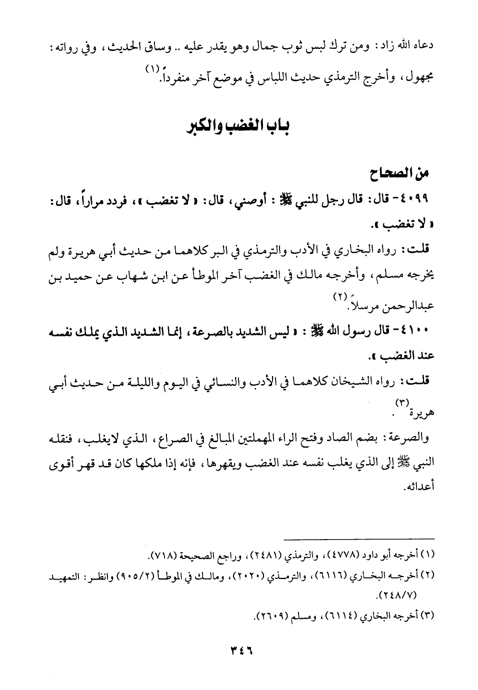 4099 - قال: قال رجل للنبي - صلى الله عليه وسلم -: أوصني، قال: "لا تغضب"، فردد مرارًا، قال: "لا تغضب".