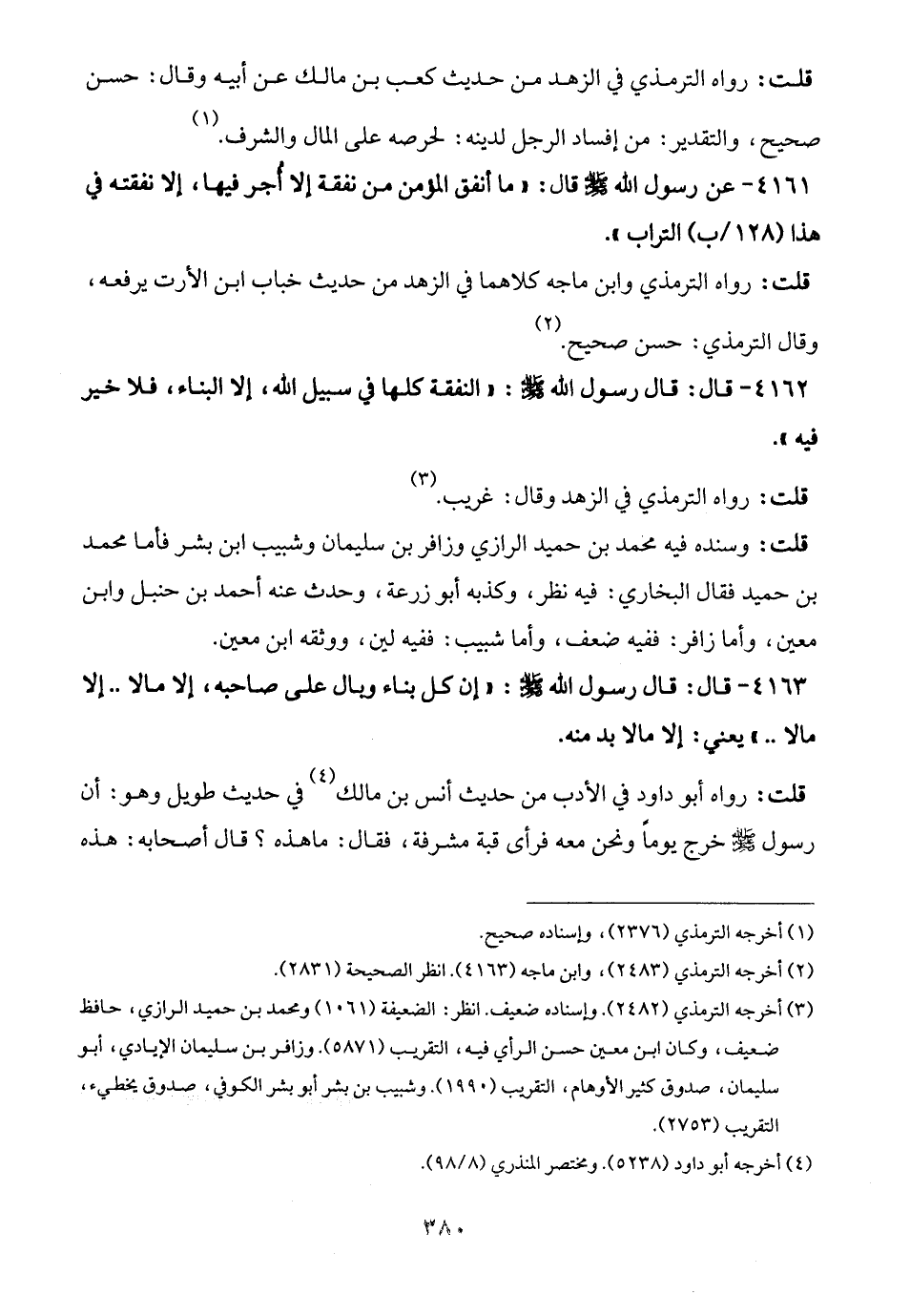 4162 - قال: قال رسول الله - صلى الله عليه وسلم -: "النفقة كلها في سبيل الله، إلا البناء، فلا خير فيه".