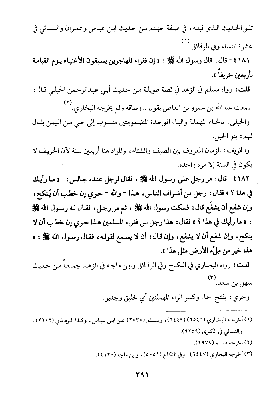 4181 - قال: قال رسول الله - صلى الله عليه وسلم -: "إن فقراء المهاجرين يسبقون الأغنياء يوم القيامة بأربعين خريفًا".