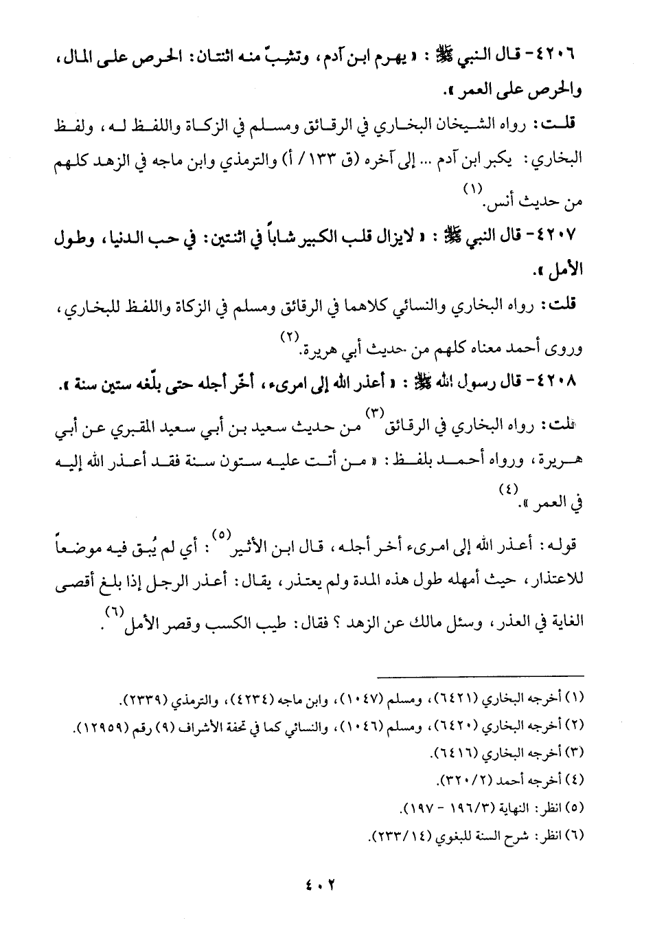 4208 - قال رسول الله - صلى الله عليه وسلم -: "أعذر الله إلى امرئ، أخّر أجله حتى بلّغه ستين سنة".