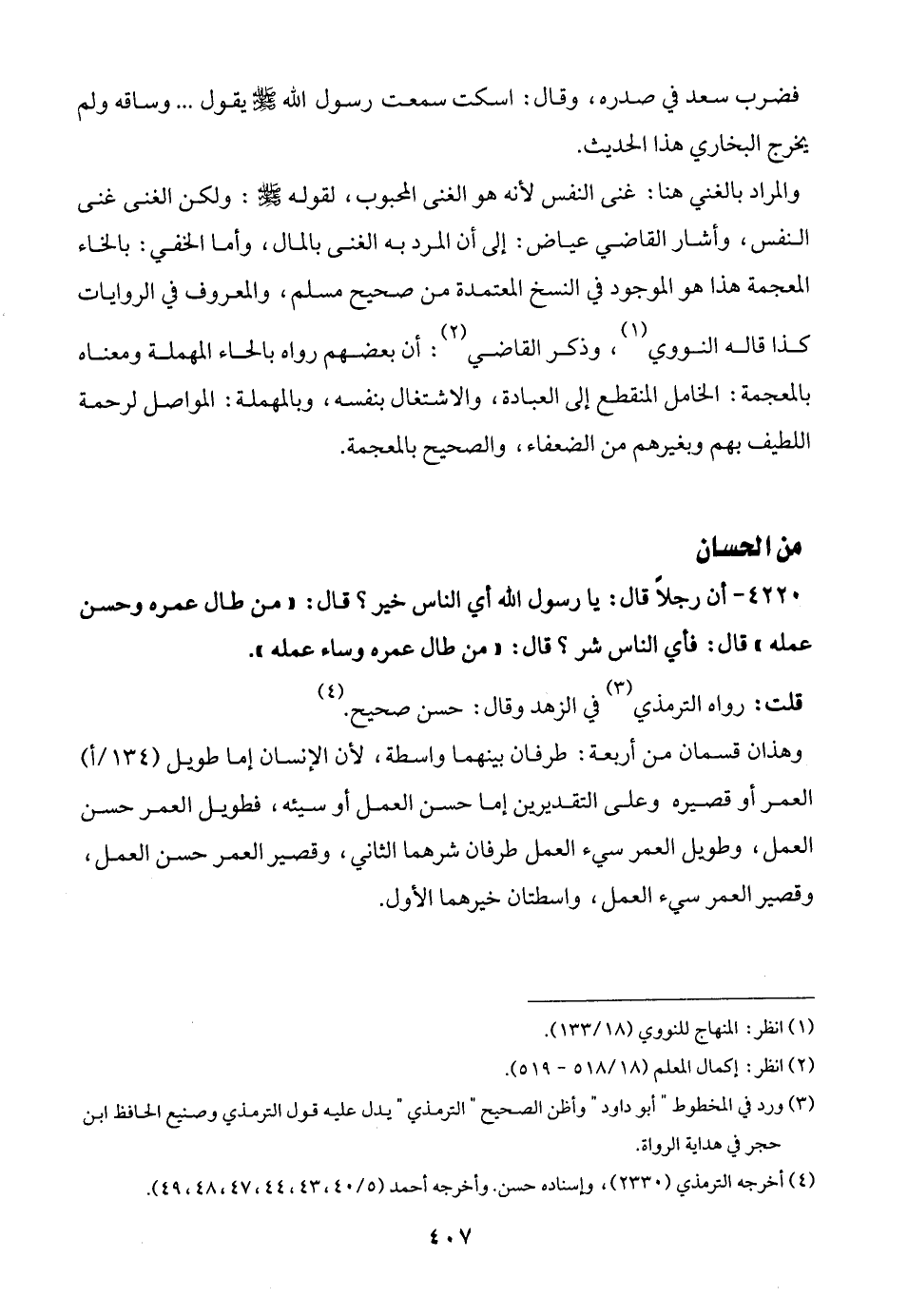 4220 - أن رجلًا قال: يا رسول الله أي الناس خير؟ قال: "من طال عمره وحسن عمله" قال: فأي الناس شر؟ قال: "من طال عمره وساء عمله".