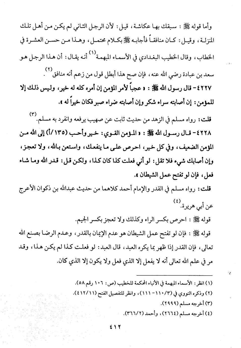 قلت: رواه مسلم في القدر والإمام أحمد كلاهما من حديث عبد الله بن ذكوان الأعرج عن أبي هريرة. (¬4)