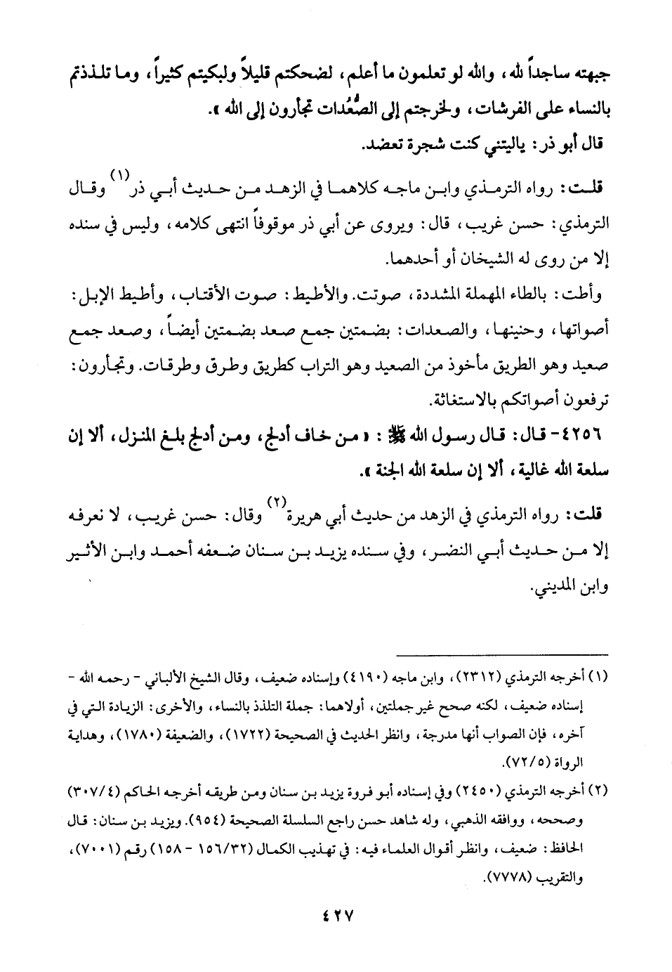 (¬2) أخرجه الترمذي (2450) وفي إسناده أبو فروة يزيد بن سنان ومن طريقه أخرجه الحاكم (4/ 307) وصححه، ووافقه الذهبي, وله شاهد حسن راجع السلسلة الصحيحة (954). ويزيد بن سنان: قال الحافظ: ضعيف، وانظر أقوال العلماء فيه: في تهذيب الكمال (32/ 156 - 158) رقم (7001)، والتقريب (7778).