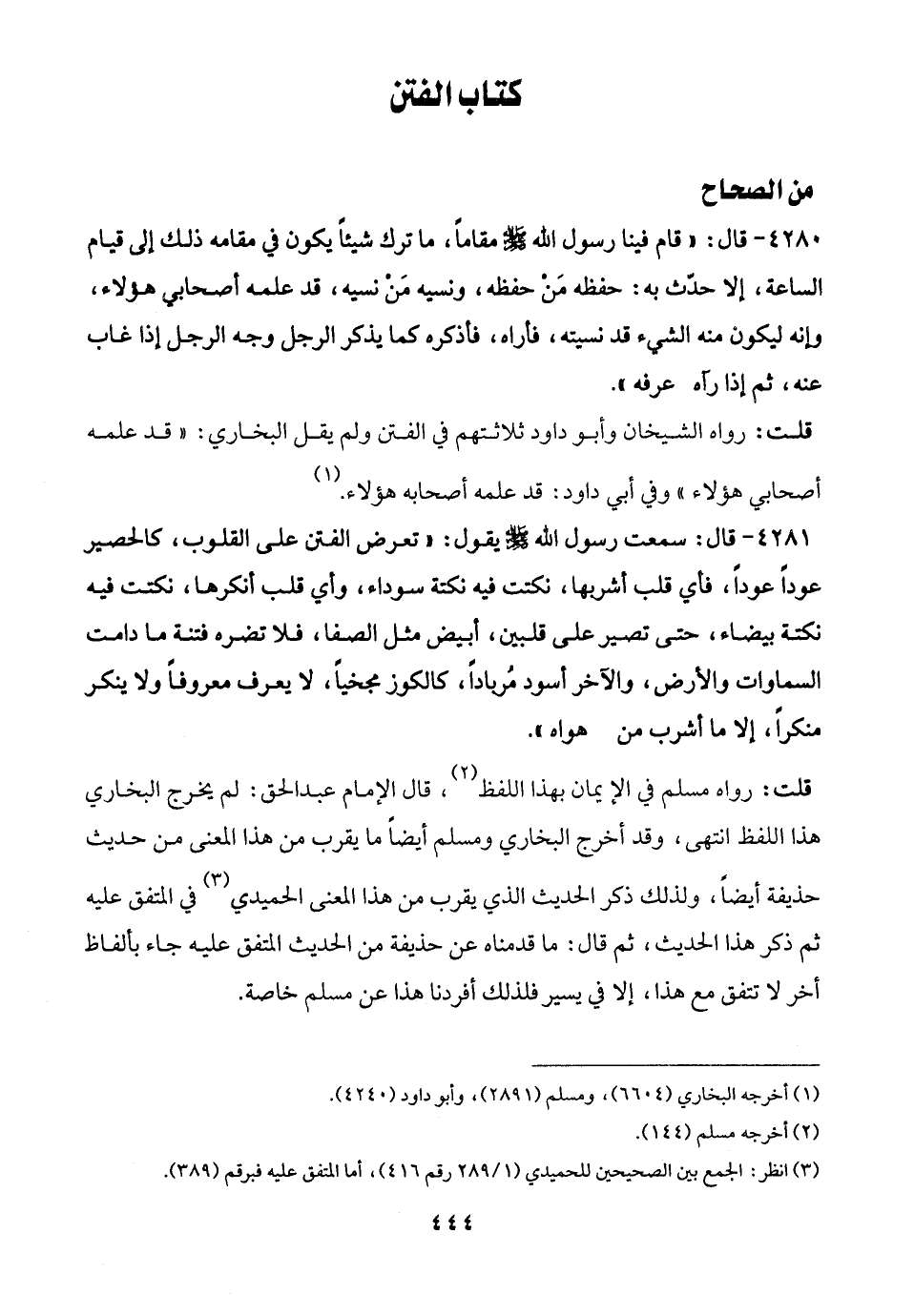 (¬3) انظر: الجمع بين الصحيحين للحميدي (1/ 289 رقم 416)، أما المتفق عليه فبرقم (389).