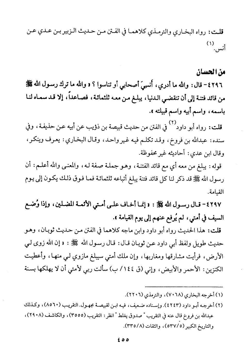 (¬2) أخرجه أبو داود (4243). وإسناده ضعيف، فيه ابن لقبيصة مجهول. التقريب (8560)، وكذلك عبد الله بن فروخ قال عنه في التقريب "صدوق يغلط" انظر: التقريب (3555)، والكاشف (2908)، والتاريخ الكبير (5/ 537)، والثقات (8/ 335).