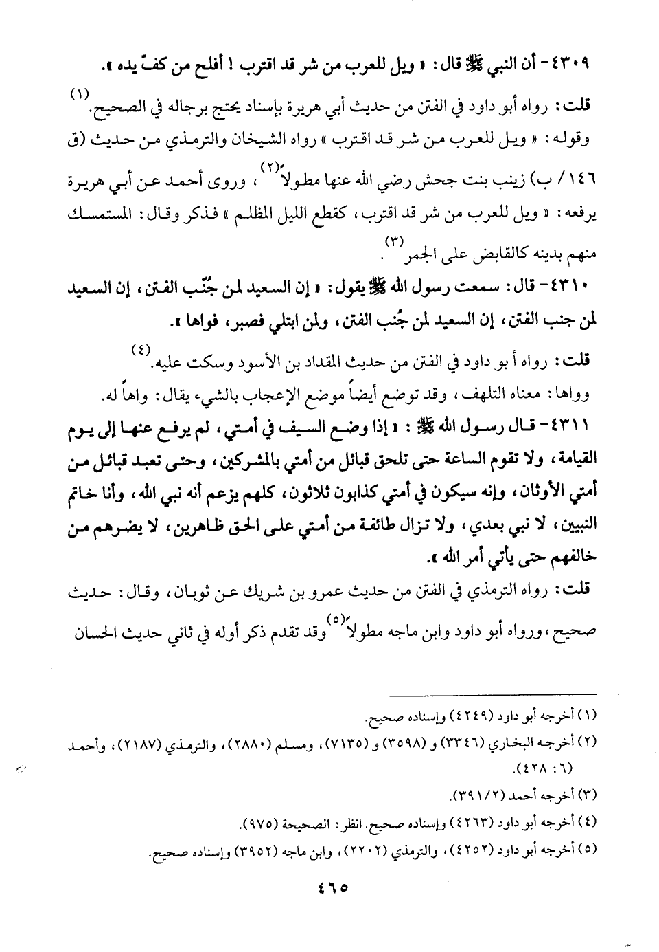 4309 - أن النبي - صلى الله عليه وسلم - قال: "ويل للعرب من شر قد اقترب! أفلح من كفّ يده".