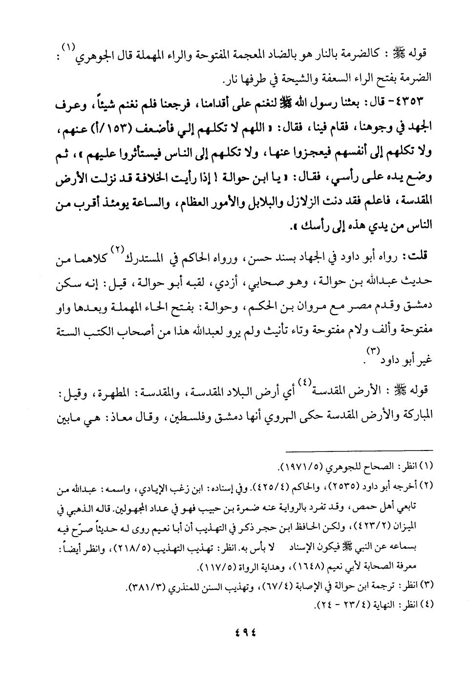 (¬3) انظر: ترجمة ابن حوالة في الإصابة (4/ 67)، وتهذيب السنن للمنذري (3/ 381).