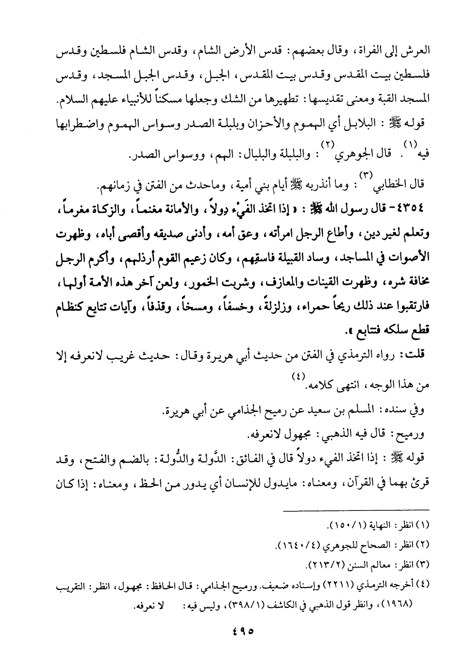 قلت: رواه الترمذي في الفتن من حديث أبي هريرة وقال: حديث غريب لا نعرفه إلا من هذا الوجه، انتهى كلامه. (¬4)