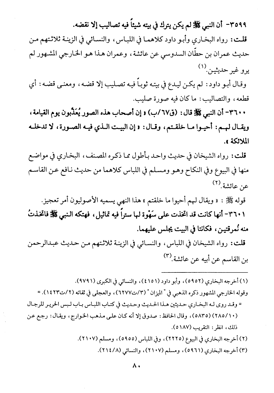 3600 - أن النبي - صلى الله عليه وسلم - قال: "إن أصحاب هذه الصور يُعَذَّبون يوم القيامة، ويقال لهم: أحيوا ما خلقتم", وقال: "إن البيت الذي فيه الصورة، لا تدخله الملائكة".