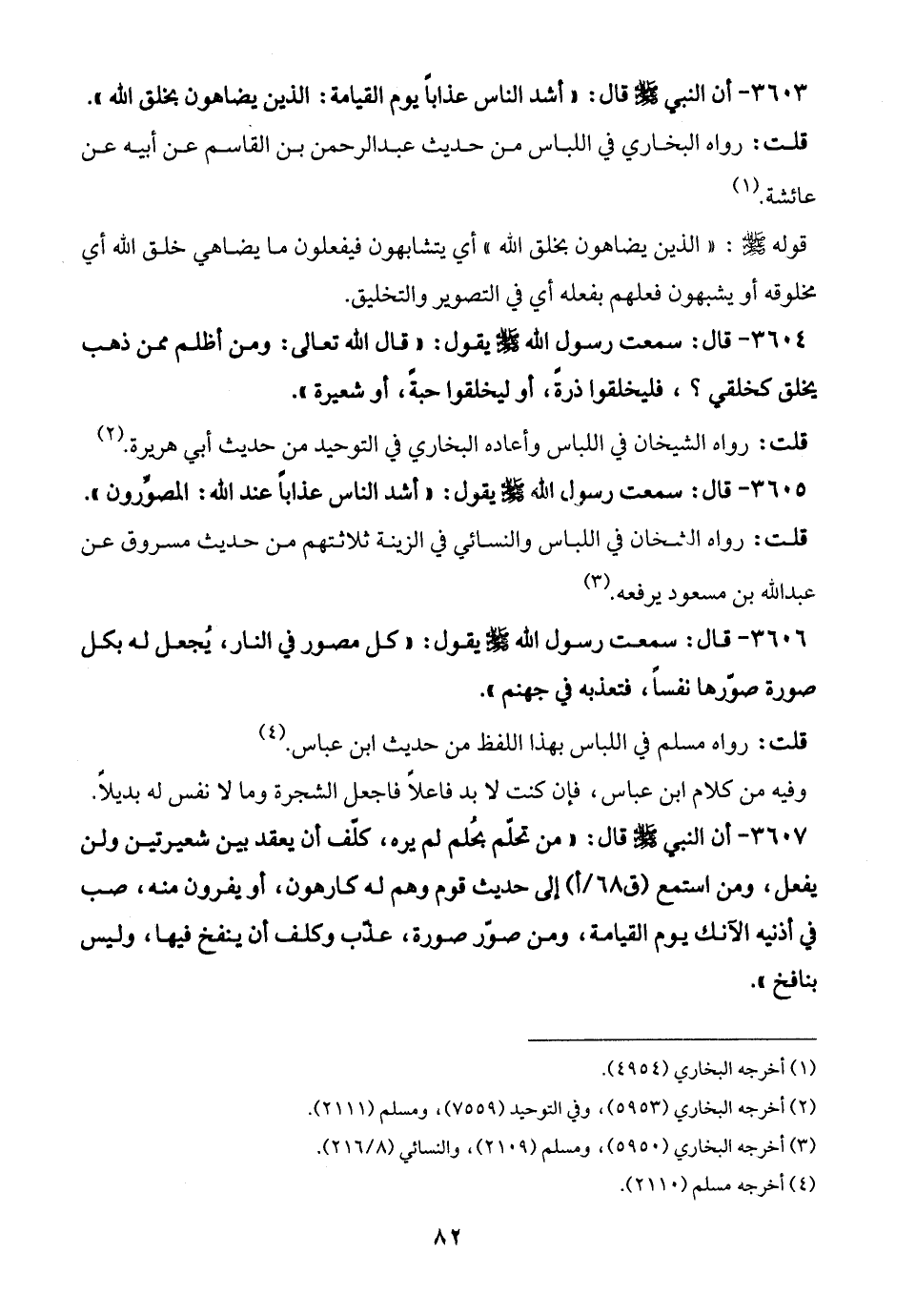 3603 - أن النبي - صلى الله عليه وسلم - قال: "أشد الناس عذابًا يوم القيامة: الذين يضاهون بخلق الله".