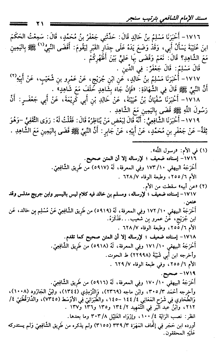 كتاب مسند الشافعي - ترتيب سنجر (اسم الجزء: 4)