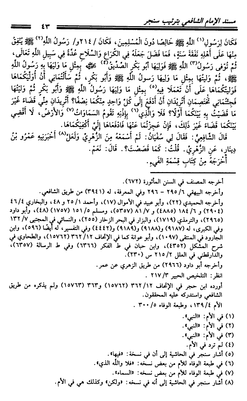 كتاب مسند الشافعي - ترتيب سنجر (اسم الجزء: 4)