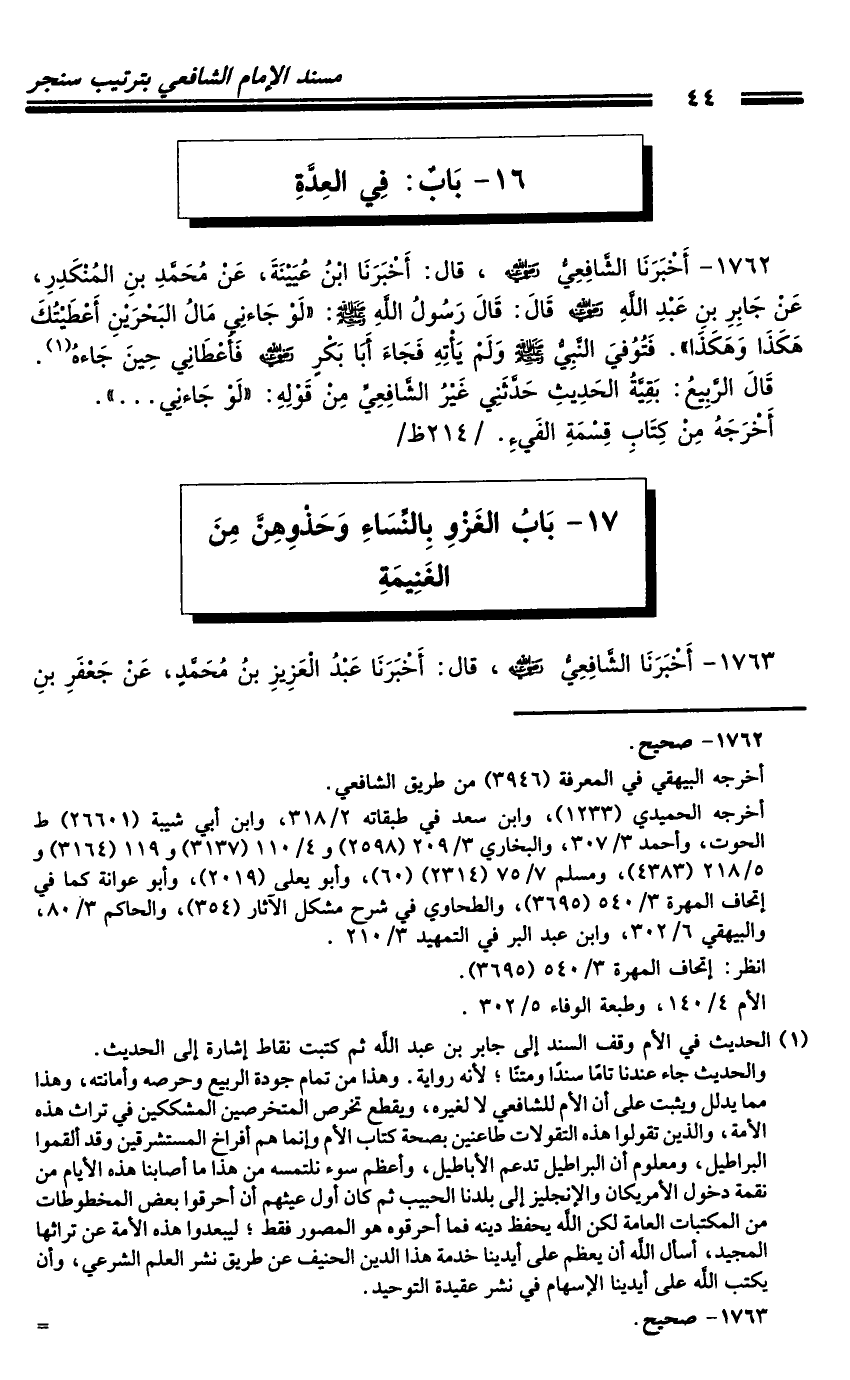 كتاب مسند الشافعي - ترتيب سنجر (اسم الجزء: 4)
