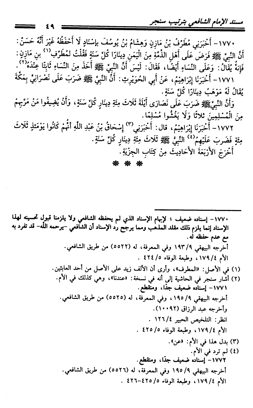 كتاب مسند الشافعي - ترتيب سنجر (اسم الجزء: 4)