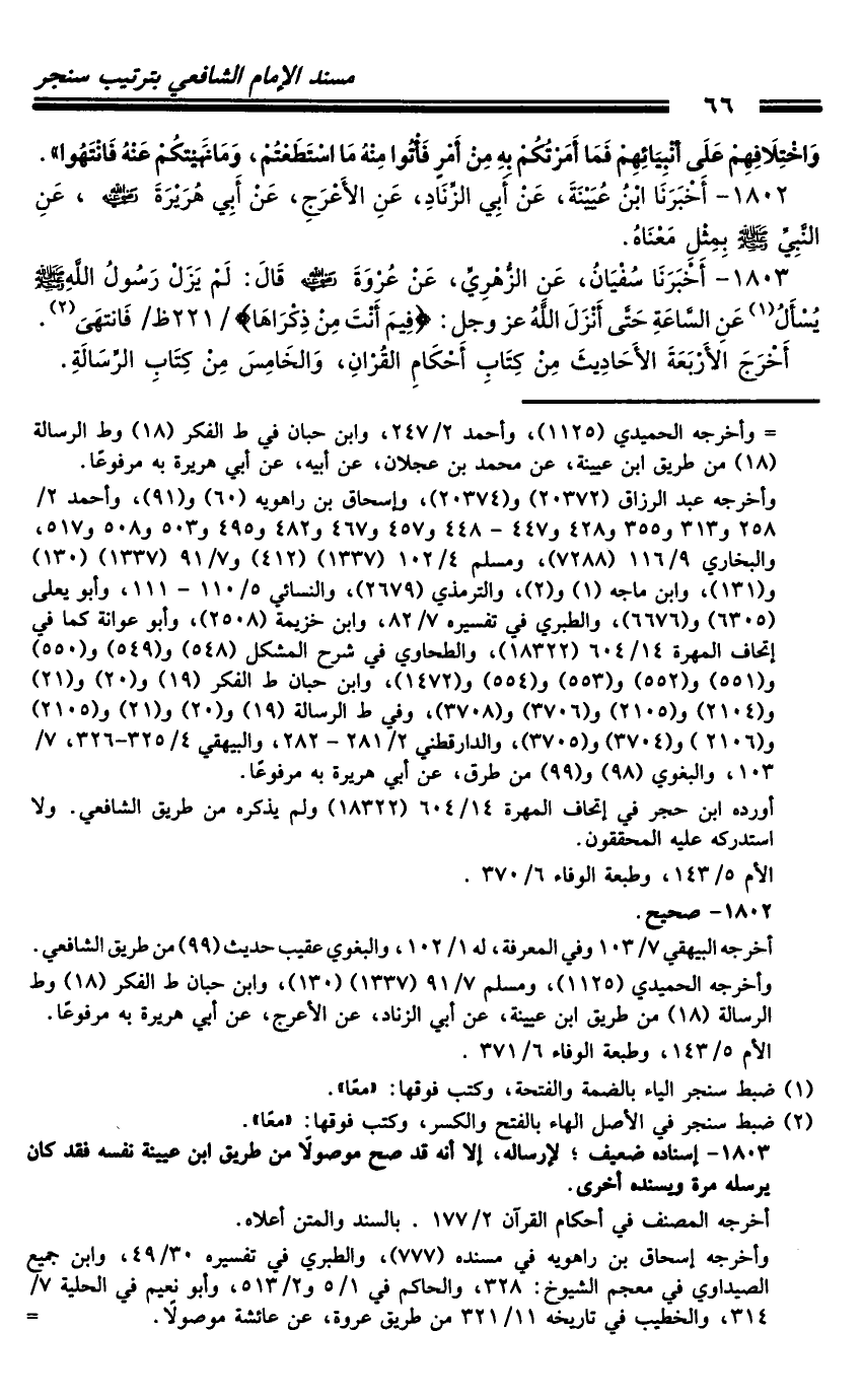 كتاب مسند الشافعي - ترتيب سنجر (اسم الجزء: 4)