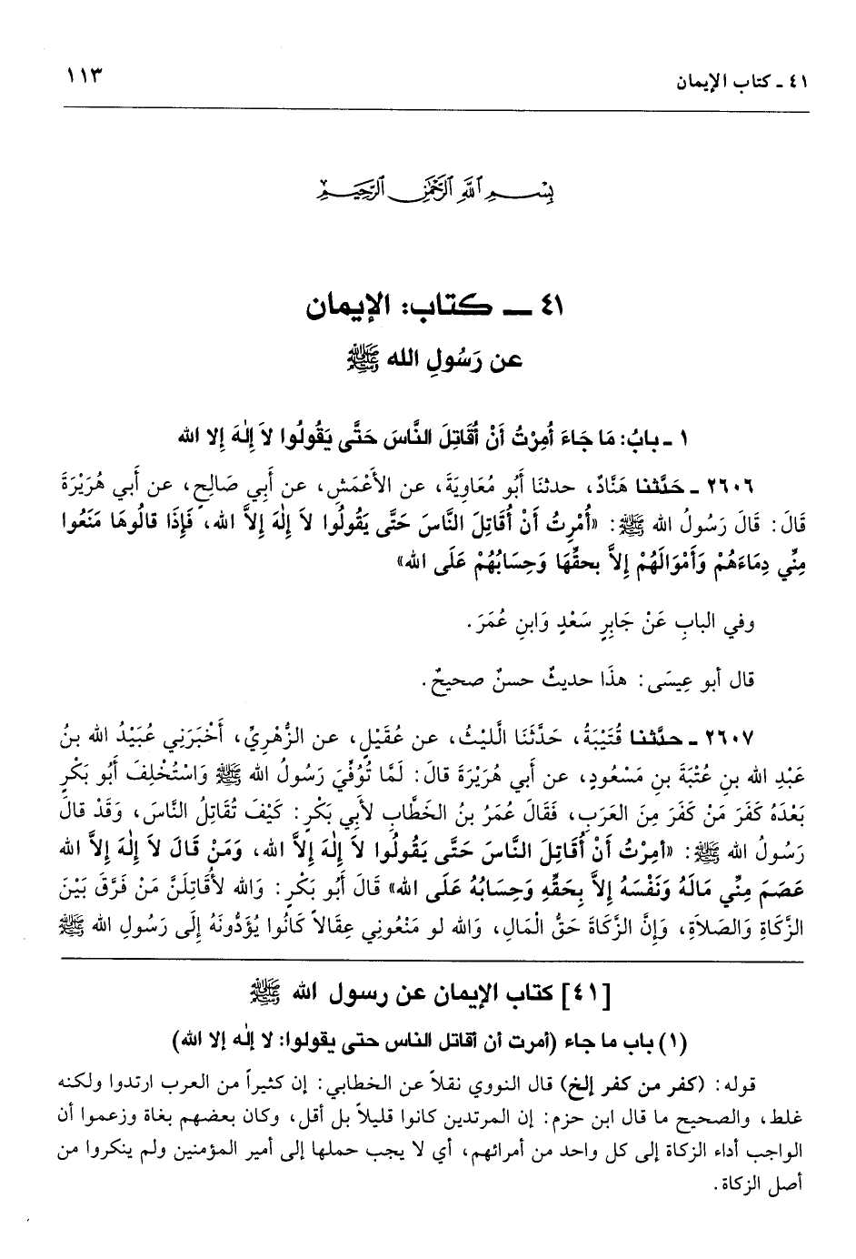 باب ما جاءأمرت أن أقاتل الناس حتى يقولوا لا إله إلا الله