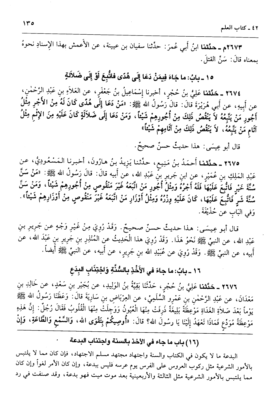 باب ما جاء في الأخذ بالسنة واجتناب البدعة