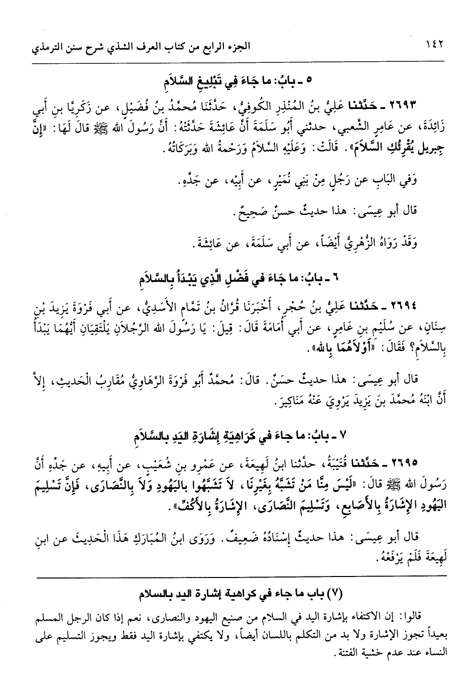 باب ما جاء في كراهية إشارة اليد بالسلام