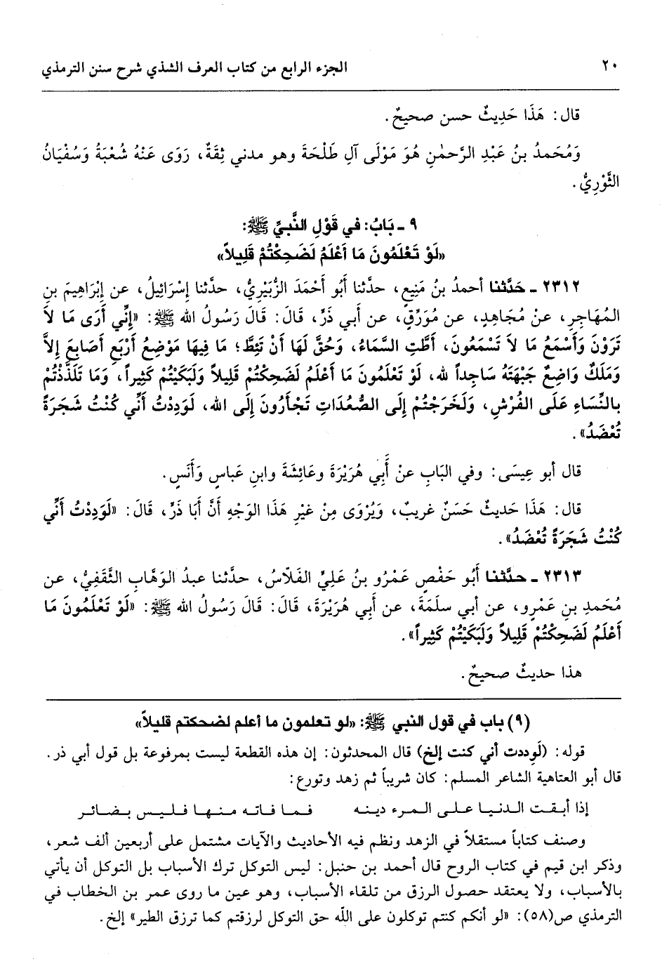 باب في قول النبي - صلّى الله عليه وسلّم - «لو تعلمون ما أعلم لضحكتم قليلا»