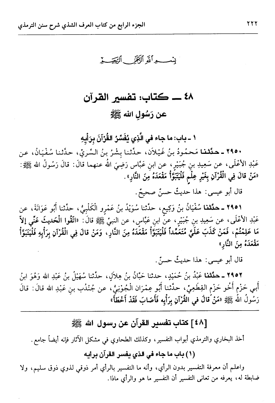 [2950] واعلم أن معرفة التفسير بدون الرأي، وأنه ما التفسير بالرأي أمر ذوقي لذوي ذوق سليم، ولا ضابطة له، يعرفه من تعانى التفسير أن التفسير ما هو والرأي ماذا.