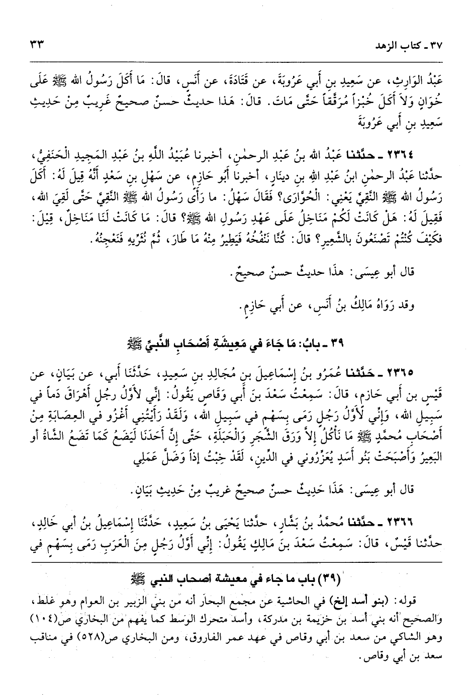 [2365] قوله: (بنو أسد إلخ) في الحاشية عن مجمع البحار أنه من بني الزبير بن العوام وهو غلط، والصحيح أنه بني أسد بن خزيمة بن مدركة، وأسد متحرك الوسط كما يفهم من البخاري ص (104) وهو الشاكي من سعد بن أبي وقاص في عهد عمر الفاروق، ومن البخاري ص (528) في مناقب سعد بن أبي وقاص.