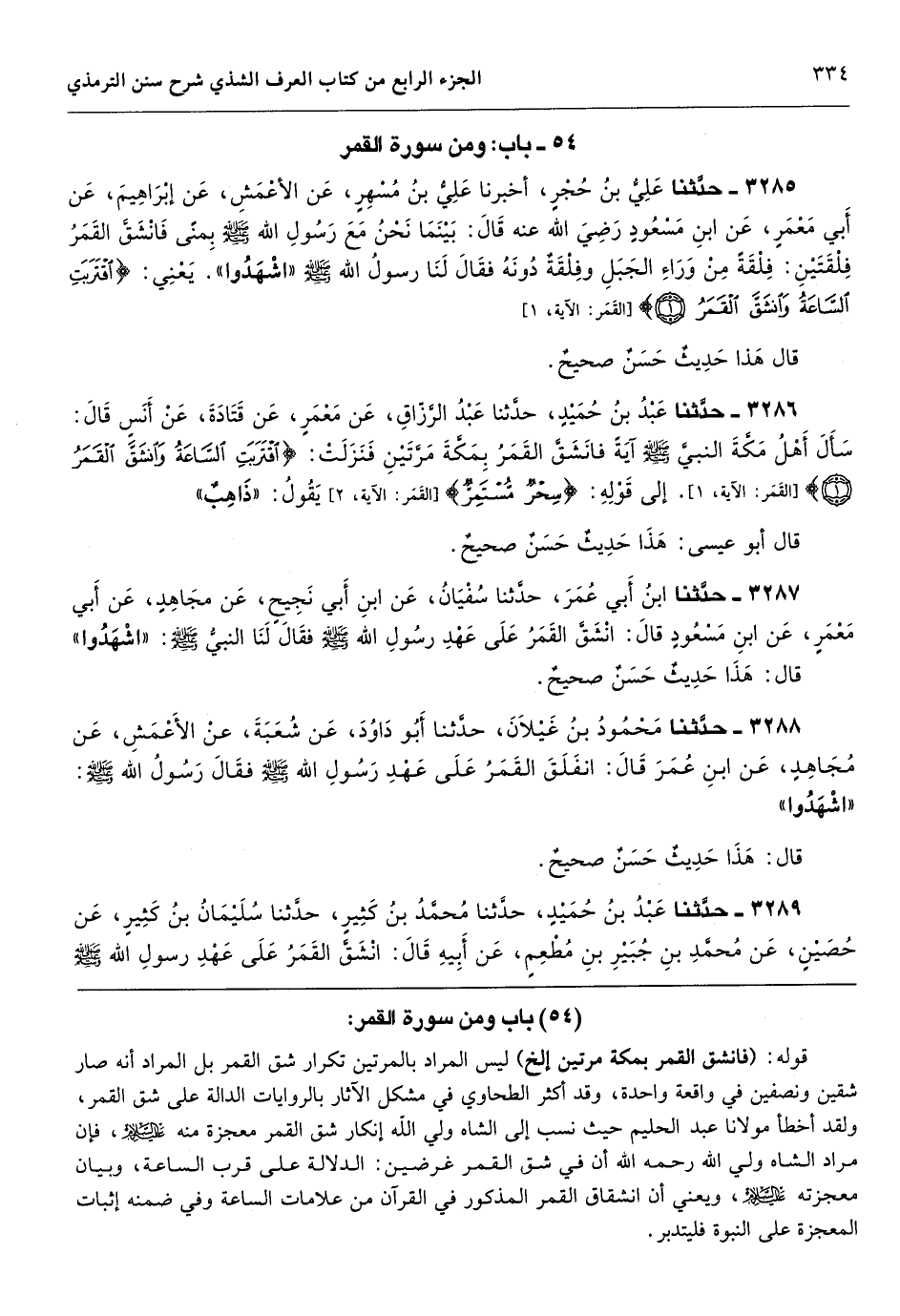 [3285] قوله: (فانشق القمر بمكة مرتين إلخ) ليس المراد بالمرتين تكرار شق القمر بل المراد أنه صار شقين ونصفين في واقعة واحدة، وقد أكثر الطحاوي في مشكل الآثار بالروايات الدالة على شق القمر، ولقد أخطأ مولانا عبد الحليم حيث نسب إلى الشاه ولي الله إنكار شق القمر معجزة منه، فإن مراد الشاه ولي الله رحمه الله أن في شق القمر غرضين: الدلالة على قرب الساعة، وبيان معجزته، ويعني أن انشقاق القمر المذكور في القرآن من علامات الساعة وفي ضمنه إثبات المعجزة على النبوة فليتدبر.