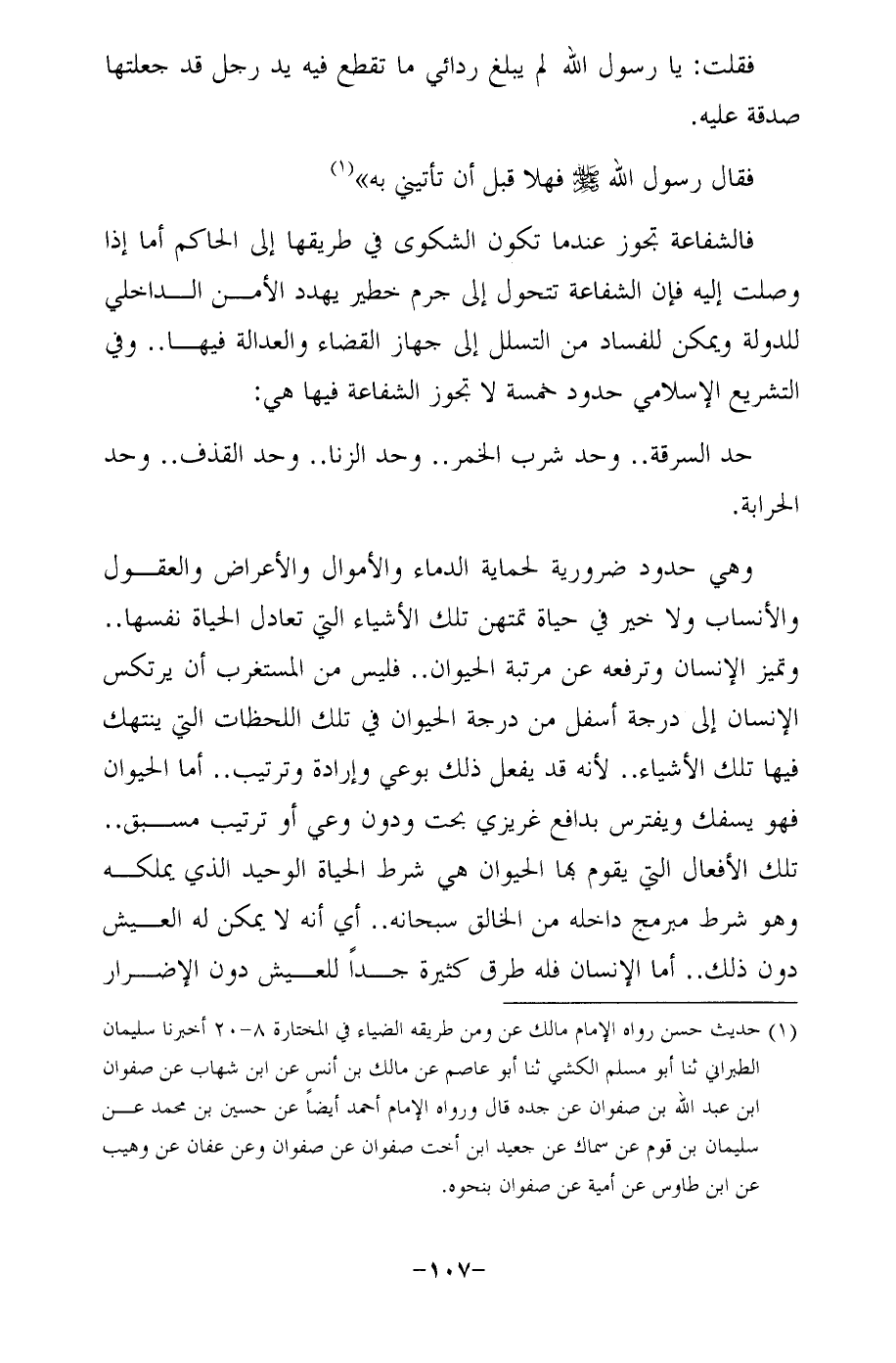 وهي حدود ضرورية لحماية الدماء والأموال والأعراض والعقول والأنساب ولا خير في حياة تمتهن تلك الأشياء التي تعادل الحياة نفسها .. وتميز الإنسان وترفعه عن مرتبة الحيوان .. فليس من المستغرب أن يرتكس الإنسان إلى درجة أسفل من درجة الحيوان في تلك اللحظات التي ينتهك فيها تلك الأشياء .. لأنه قد يفعل ذلك بوعي وإرادة وترتيب .. أما الحيوان فهو يسفك ويفترس بدافع غريزي بحت ودون وعي أو ترتيب مسبق .. تلك الأفعال التي يقوم بها الحيوان هي شرط الحياة الوحيد الذي يملكه وهو شرط مبرمج داخله من الخالق سبحانه .. أي أنه لا يمكن له العيش دون ذلك .. أما الإنسان فله طرق كثيرة جدًا للعيش دون الإضرار