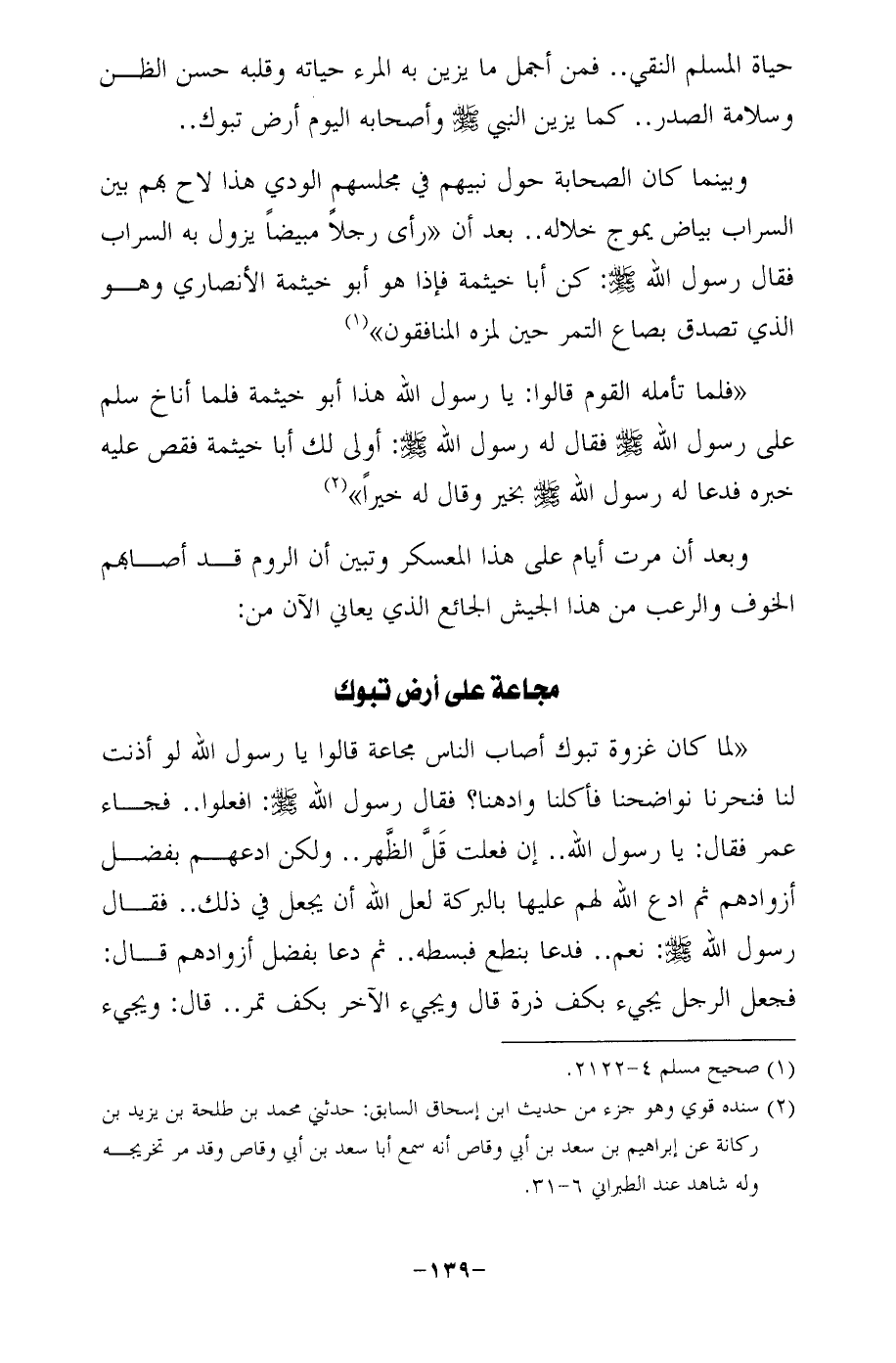 حياة المسلم النقي .. فمن أجمل ما يزين به المرء حياته وقلبه حسن الظن وسلامة الصدر .. كما يزين النبي - صلى الله عليه وسلم - وأصحابه اليوم أرض تبوك ..