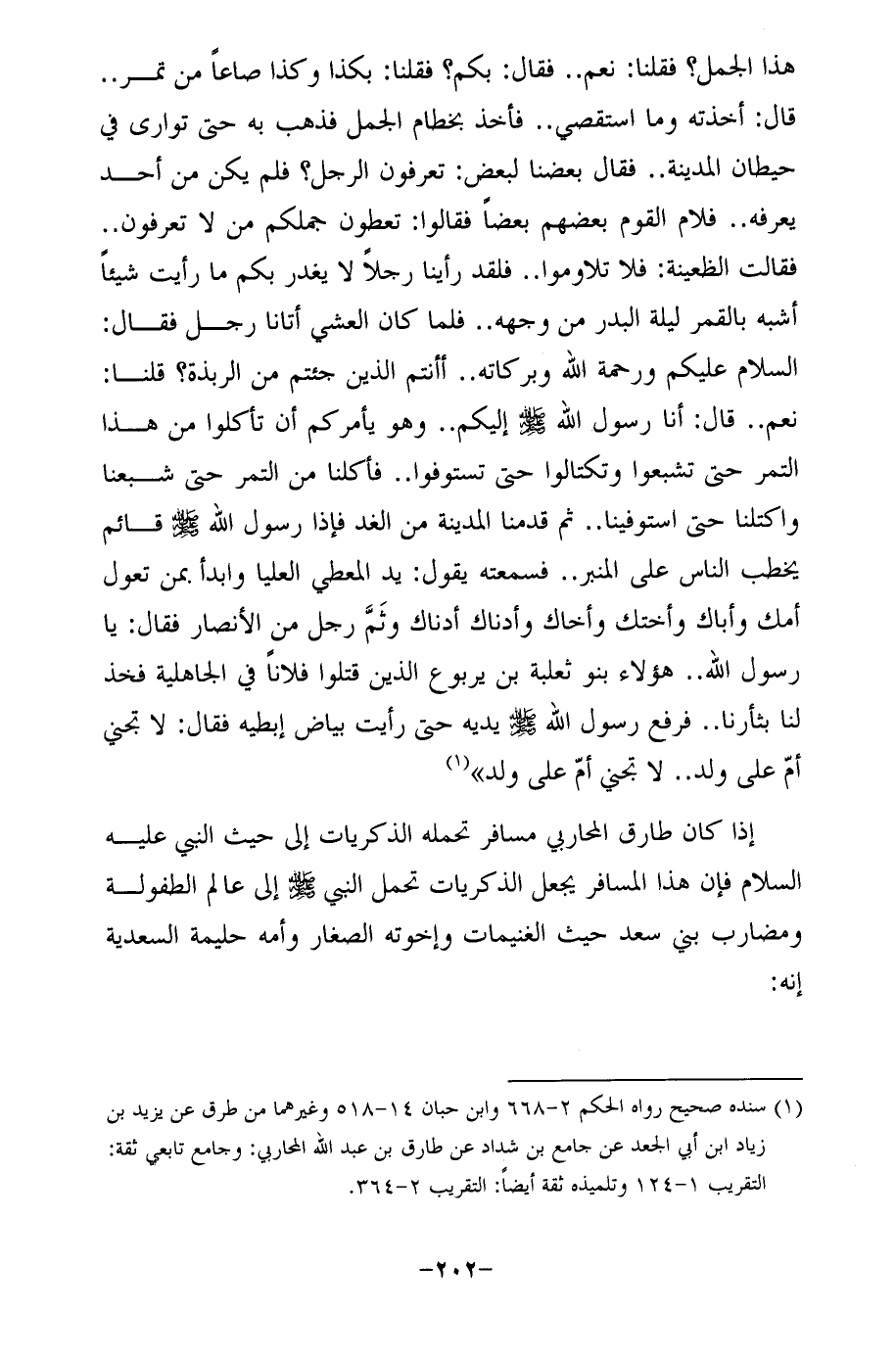 (¬1) سنده صحيح رواه الحكم 2 - 668 وابن حبان 14 - 518 وغيرهما من طرق عن يزيد بن زياد ابن أبي الجعد عن جامع بن شداد عن طارق بن عبد الله المحاربي: وجامع تابعي ثقة: التقريب 1 - 124 وتلميذه ثقة أيضًا: التقريب 2 - 364.
