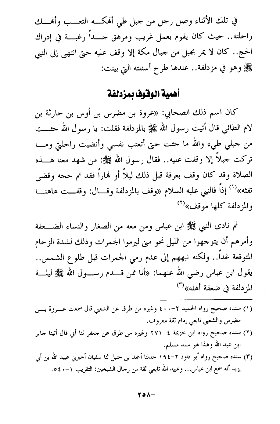 (¬1) سنده صحيح رواه الحميد 2 - 400 وغيره من طرق عن الشعبي قال سمعت عروة بن مضرس والشعبي تابعي إمام ثقة معروف.