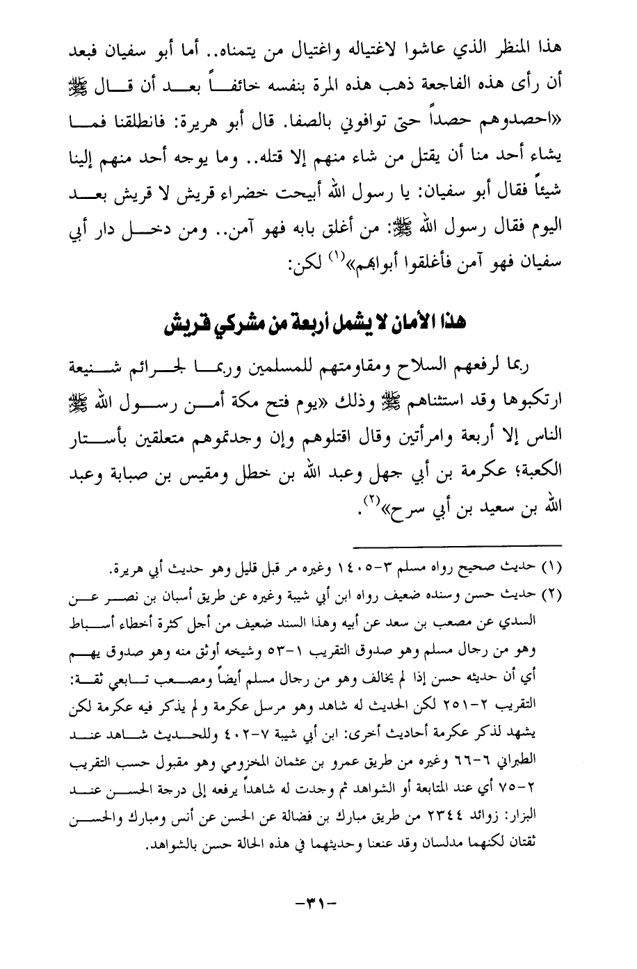 هذا الأمان لا يشمل أربعة من مشركي قريش