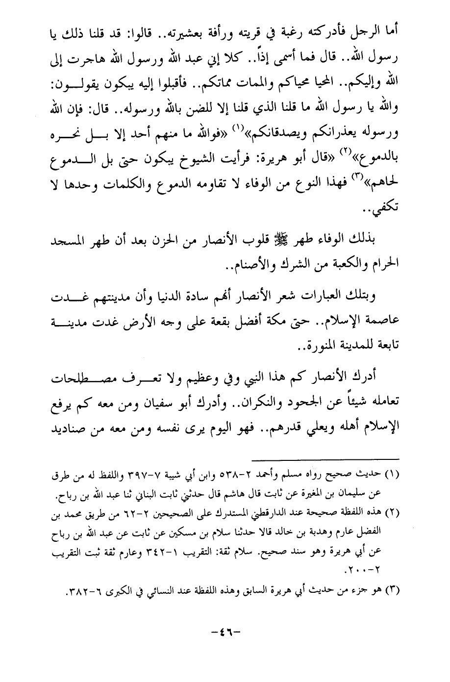 بذلك الوفاء طهر - صلى الله عليه وسلم - قلوب الأنصار من الحزن بعد أن طهر المسجد الحرام والكعبة من الشرك والأصنام ..