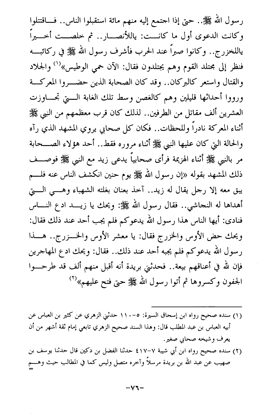 (¬1) سنده صحيح رواه ابن إسحاق السيرة: 5 - 110 حدثني الزهريّ عن كثير بن العباس عن أبيه العباس بن عبد المطلب قال: وهذا السند صحيح الزهريّ تابعي إمام ثقة أشهر من أن يعرف وشيخه صحابي صغير.