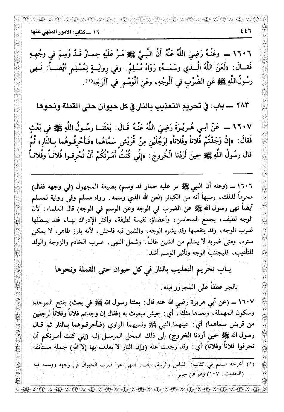 (¬1) أخرجه مسلم في كتاب: اللباس والزينة، باب: النهي عن ضرب الحيوان في وجهه ووسمه فيه (الحديث:107) وهو عن جابر ...