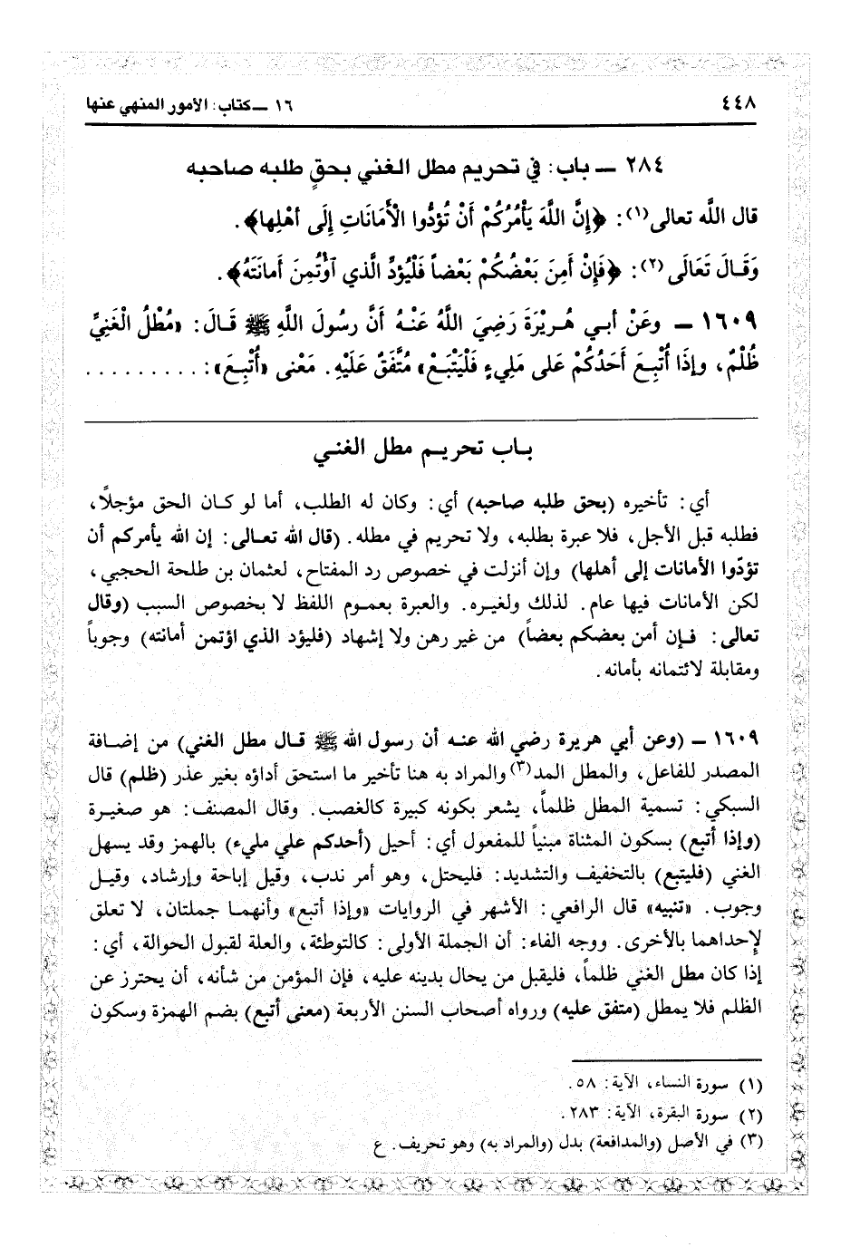 284- باب في تحريم مطل الغني بحقٍّ طلبه صاحبه