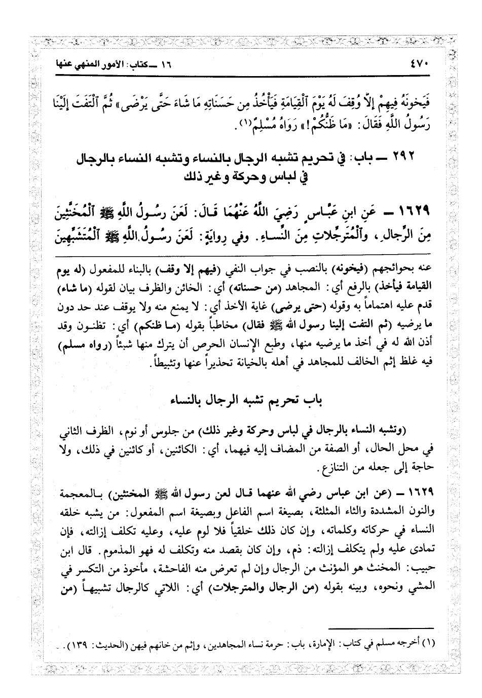 باب تحريم تشبه الرجال بالنساء
