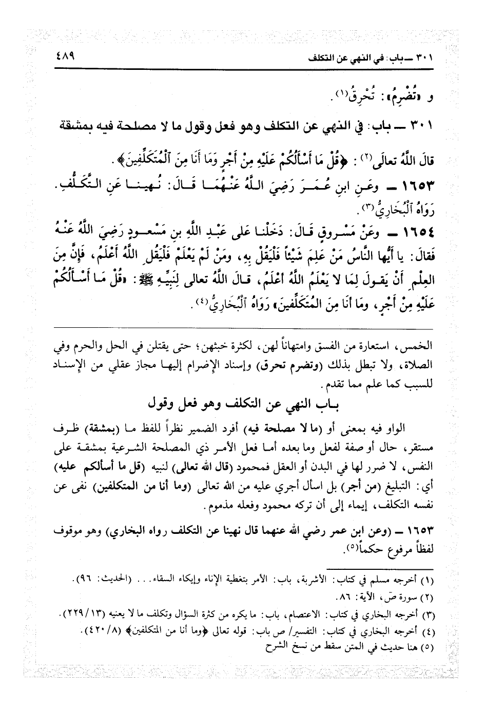 301- باب في النهي عن التكلف وهو فعل وقول ما لا مصلحة فيه بمشقة