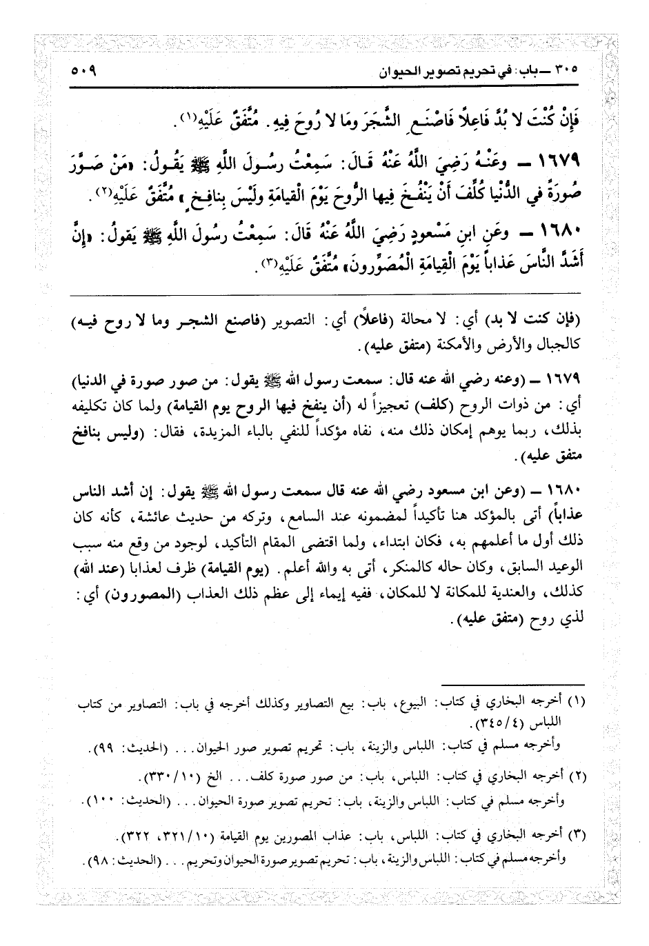 1680- وعن ابن مسعودٍ - رضي الله عنه - قال: سمعتُ رسولَ اللهِ - صلى الله عليه وسلم - يقولُ: "إنَّ أشَدَّ النَّاسِ عَذَاباً يَومَ القِيَامَةِ المُصَوِّرُونَ". متفق عليه (¬3) .