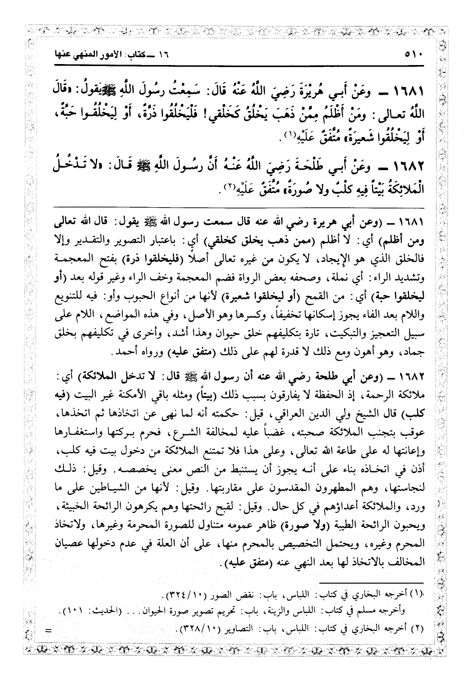 (¬2) أخرجه البخاري في كتاب: اللباس، باب: التصاوير (10/328) . =