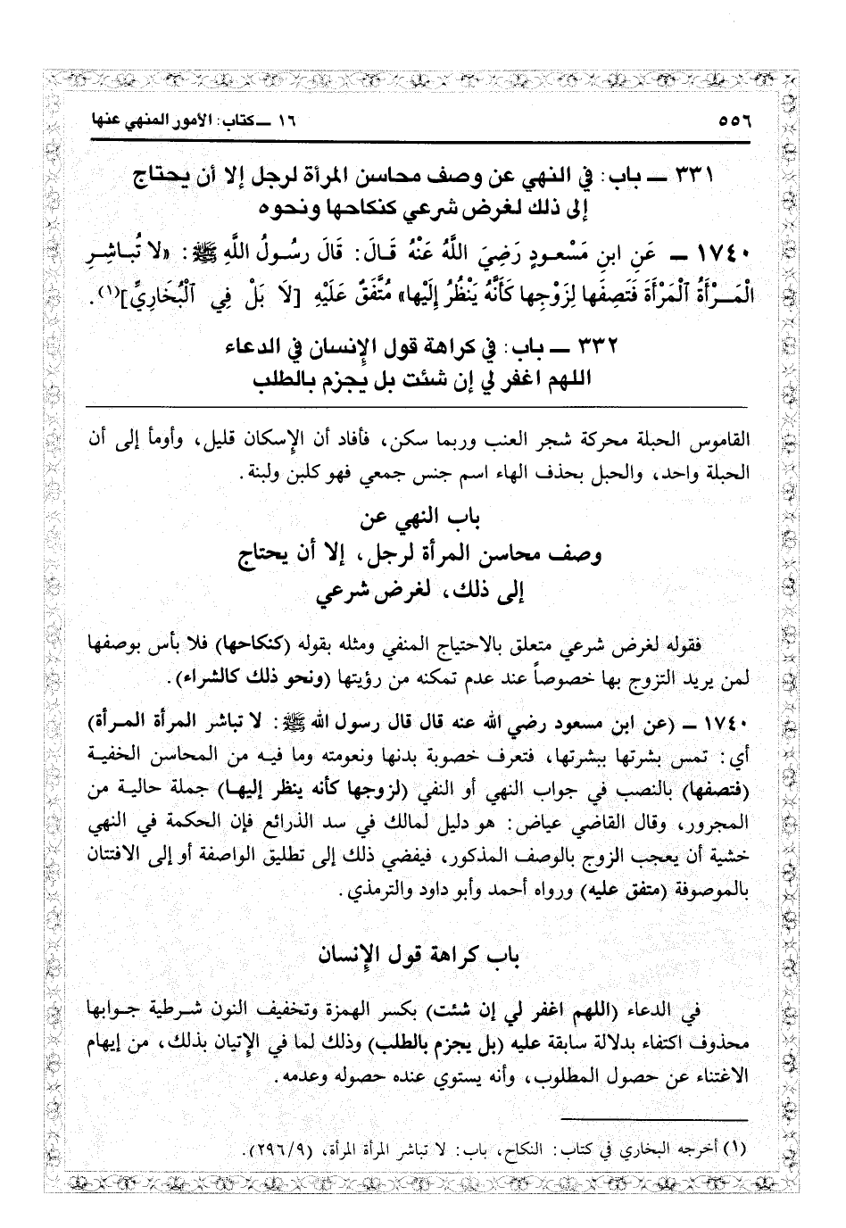 331- باب في النهي عن وصف محاسن المرأة لرجل إلاَّ أن يحتاج إلى ذلك لغرض شرعي كنكاحها ونحوه