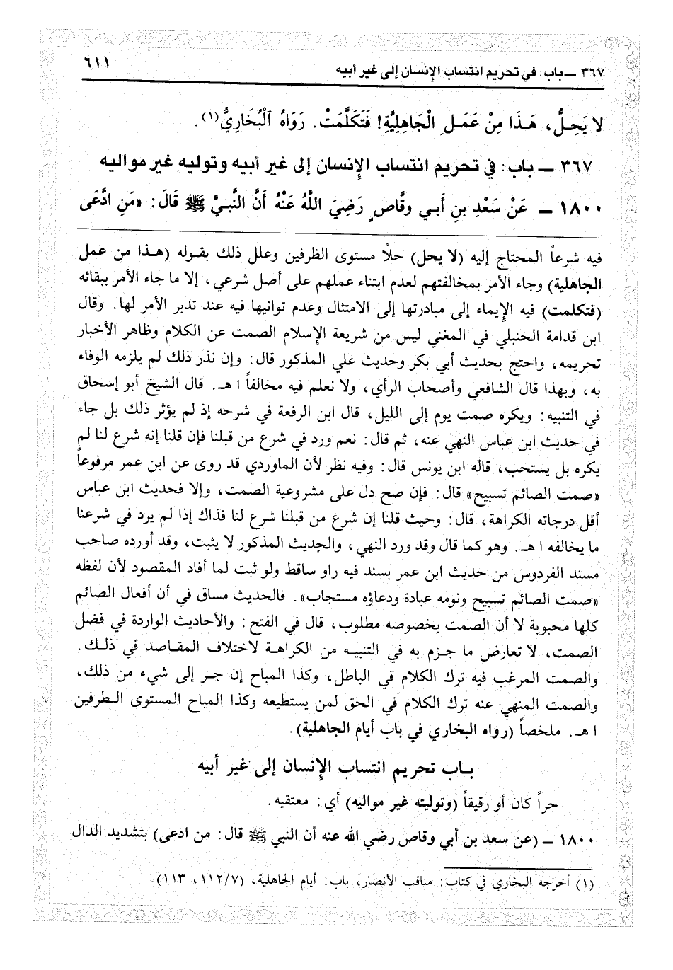 367- باب في تحريم انتساب الإنسان إِلَى غير أَبيه وَتَولِّيه إِلَى غير مَواليه