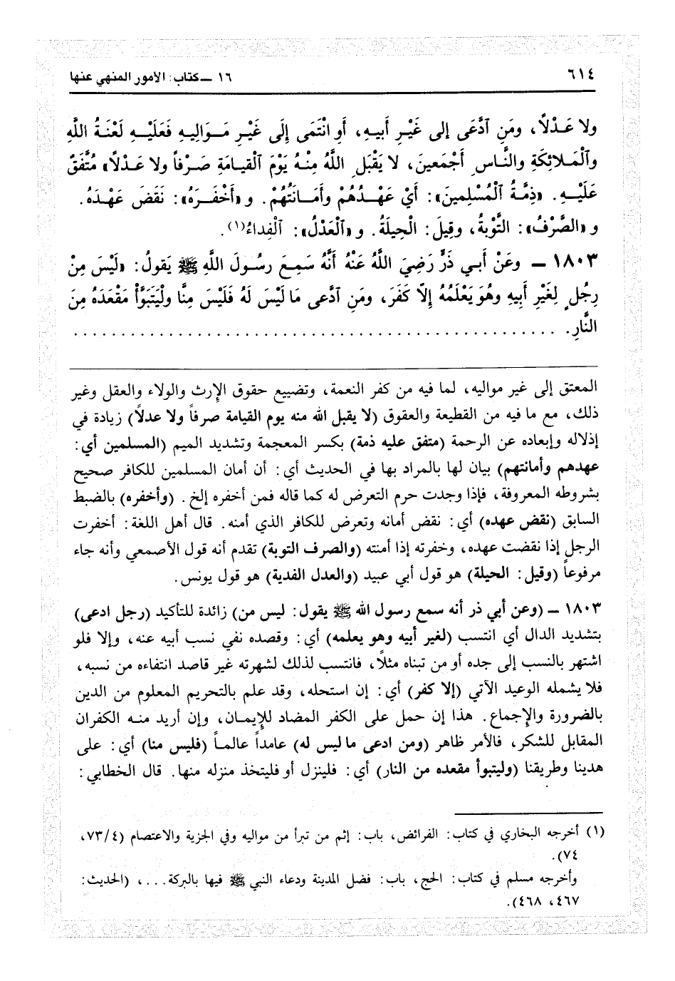 (¬1) أخرجه البخاري في كتاب: الفرائض، باب: إثم من تبرأ من مواليه وفي الجزية والاعتصام (4/73، 74) .