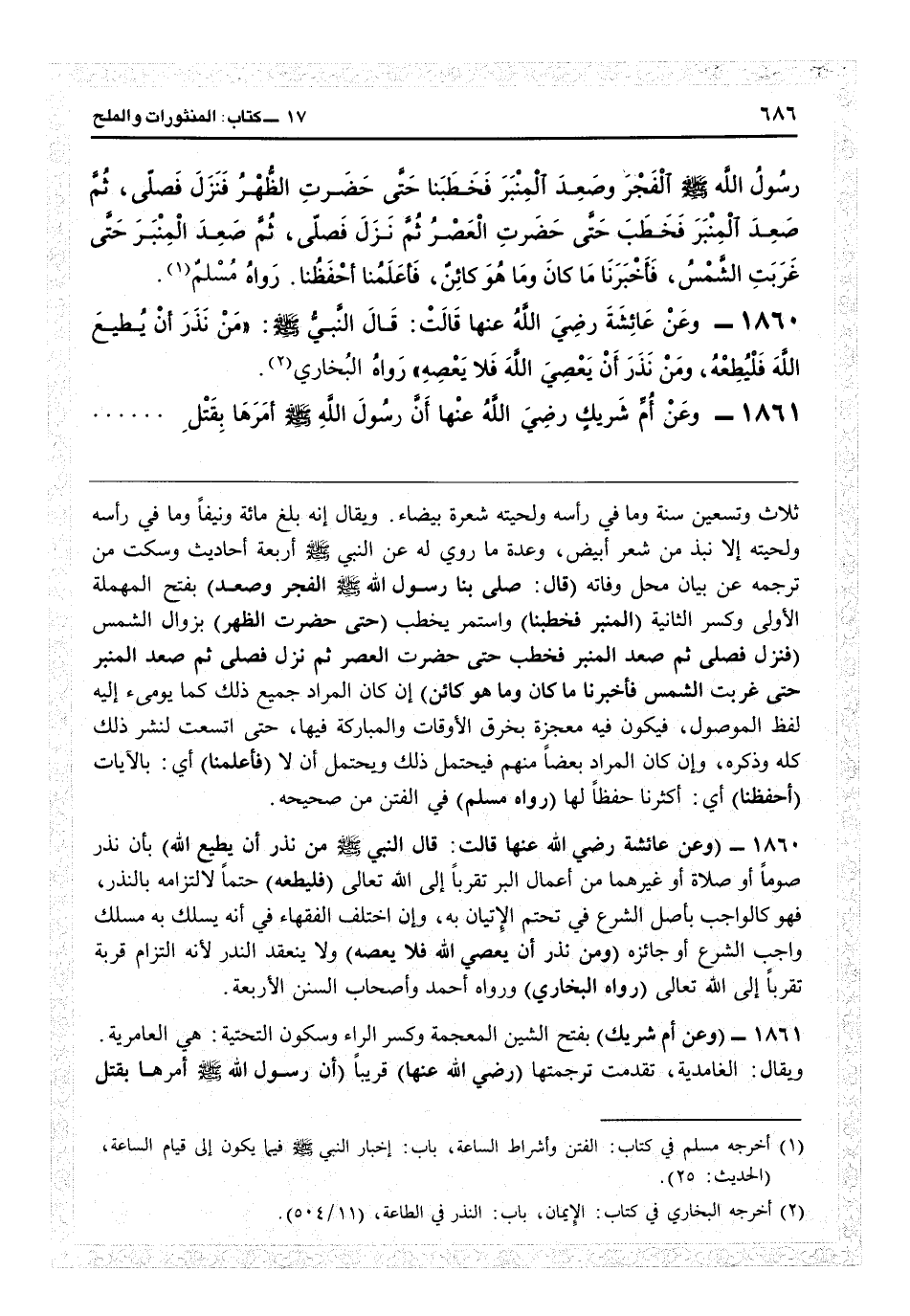 (¬2) أخرجه البخاري في كتاب: الإِيمان، باب: النذر في الطاعة، (11/504) .