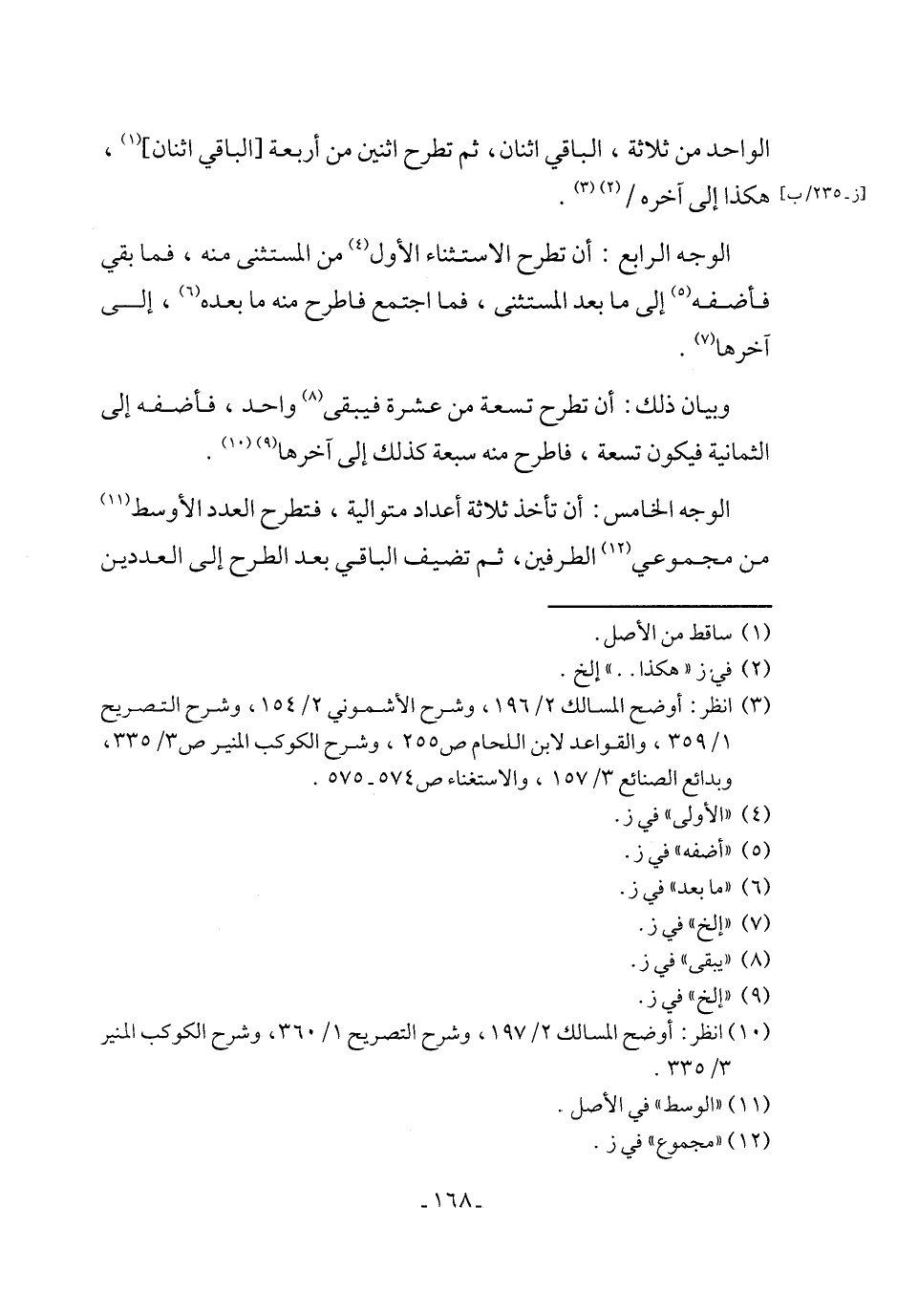 (٣) انظر: أوضح المسالك ٢/ ١٩٦، وشرح الأشموني ٢/ ١٥٤، وشرح التصريح ١/ ٣٥٩، والقواعد لابن اللحام ص ٢٥٥، وشرح الكوكب المنير ص ٣/ ٣٣٥، وبدائع الصنائع ٣/ ١٥٧، والاستغناء ص ٥٧٤ - ٥٧٥.