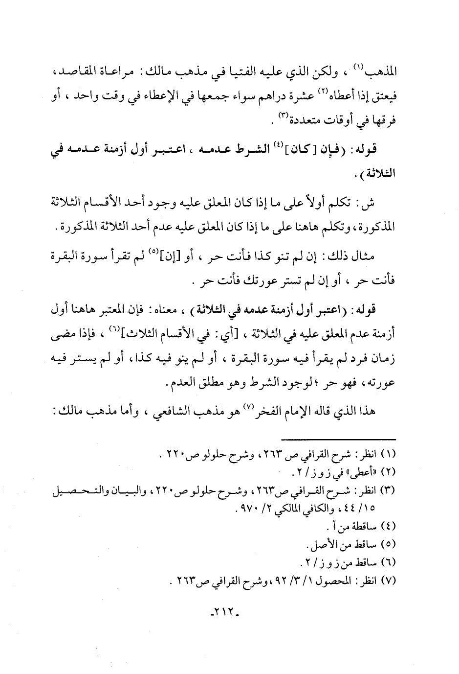 (١) انظر: شرح القرافي ص ٢٦٣، وشرح حلولو ص ٢٢٠.
