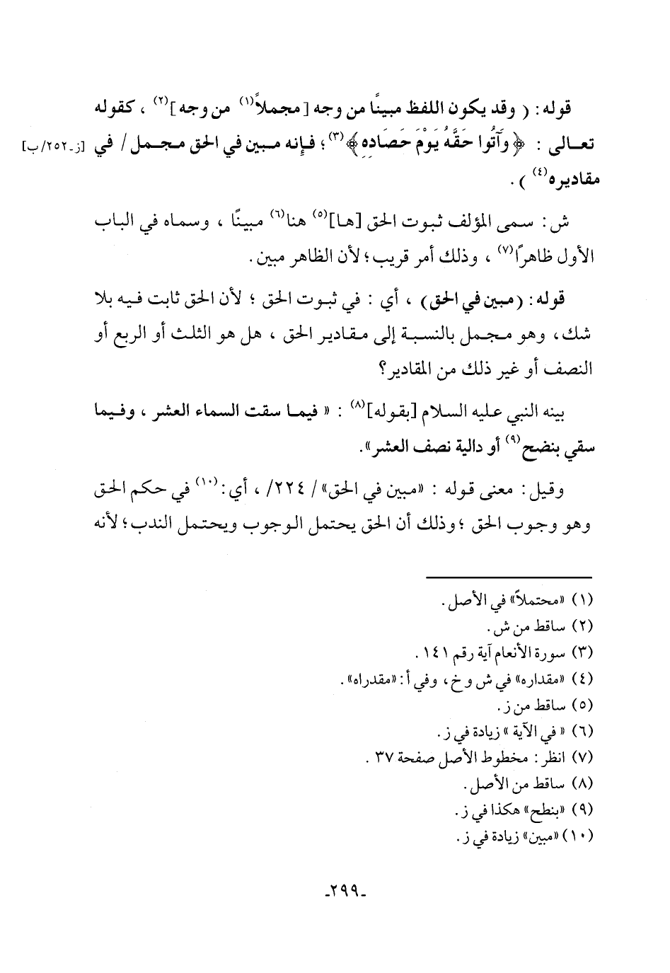 ش: سمى المؤلف ثبوت الحق [ها] (٥) هنا (٦) مبينًا، وسماه في الباب الأول ظاهرًا (٧)، وذلك أمر قريب؛ لأن الظاهر مبين.