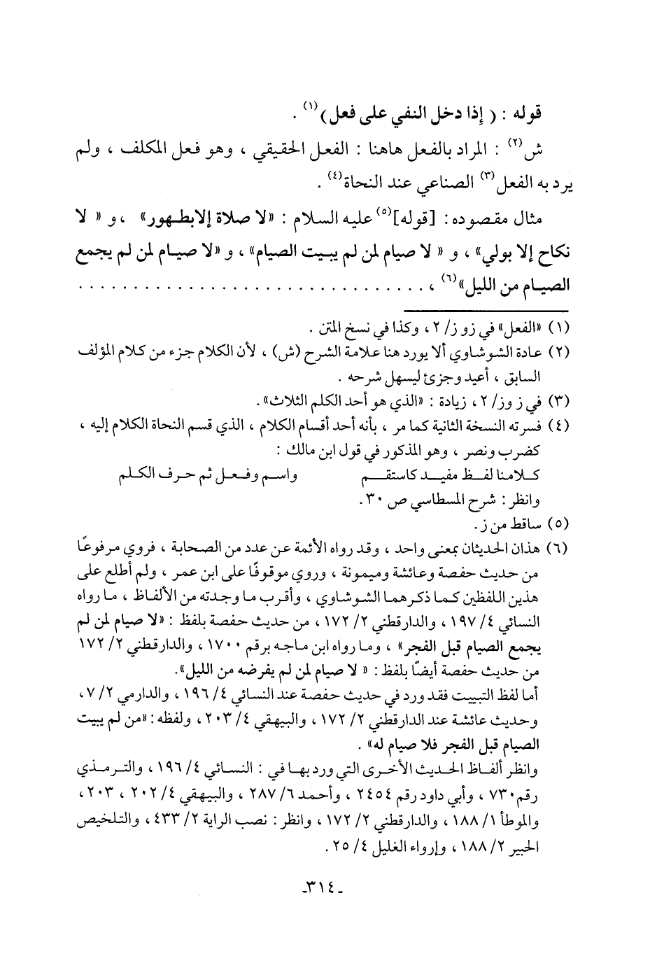 ش (٢): المراد بالفعل ها هنا: الفعل الحقيقي، وهو فعل المكلف، ولم يرد به الفعل (٣) الصناعي عند النحاة (٤).