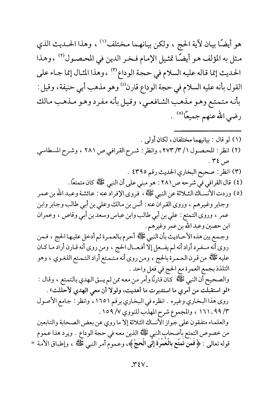 (٤) قال القرافي في شرحه ص ٢٨١: هو مبني على أن النبي - صلى الله عليه وسلم - كان متمتعًا.