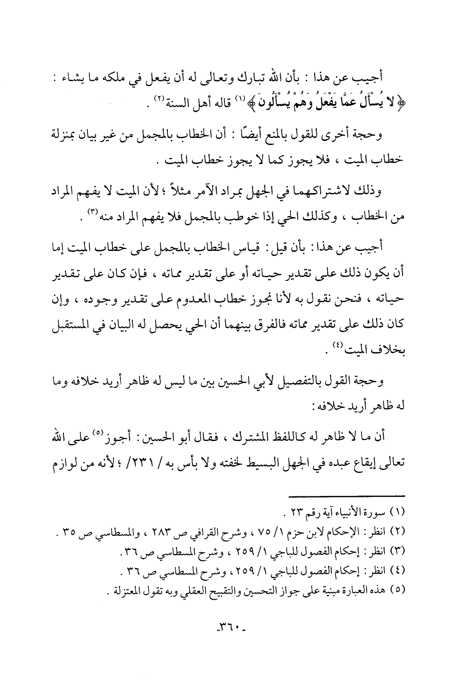 (٥) هذه العبارة مبنية على جواز التحسين والتقبيح العقلي وبه تقول المعتزلة.